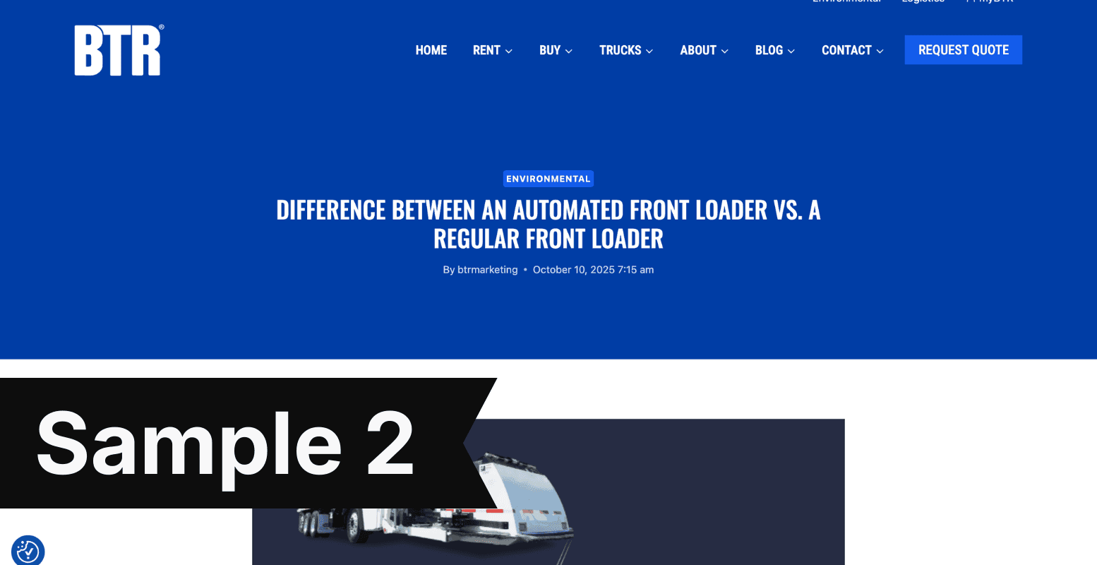 Big Truck Rental, a nationwide truck rental company, needed a strategic content structure that supported customers in the research phase of their journey. I developed separate Environmental and Logistics blog sections featuring content designed to answer key industry questions, strengthen SEO performance, and build brand trust with prospective customers.